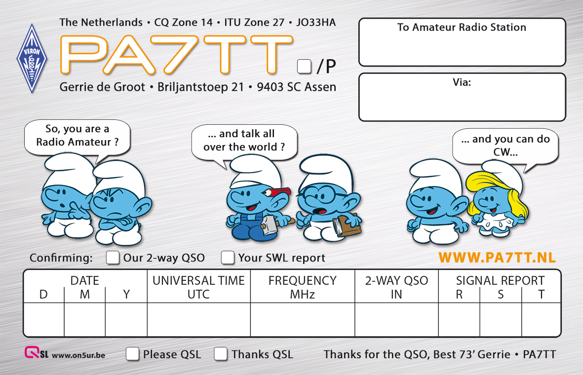 Dit is mijn QSL kaart, ter bevestiging van elke eerste verbinding met een radiozendamateur, of ter bevestiging van een ontvangstrapport van een luisteramateur.