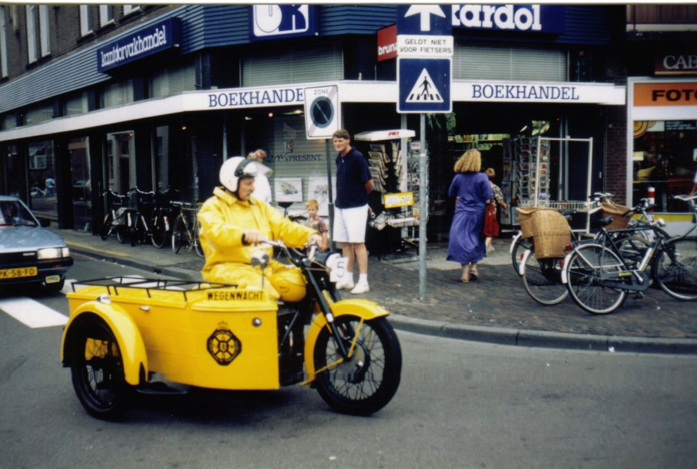 Aangezien mijn vader wegenwacht was (nummer 25 en hij had ook route 25). Deze route liep van het voormalige Wegenwachtstation bij Hoogeveen tot Wegenwachtstation ’t Harde. De eerste jaren werd er met een motor (BSA) met zijspan gereden. Later volgden de Citroen, welke weer opgevolgd werd door de Renault R4. De Rijkspolitie kwam regelmatig bij mijn vader thuis om na te praten wanneer er weer eens iets bijzonders op de weg was gebeurd. Dan ging men altijd op het geluid af in de grote schuur. Bij ons was de schuur groter dan het huis, dat moest ook wel, want er was nogal het e.e.a. aan gereedschap en onderdelen aanwezig.