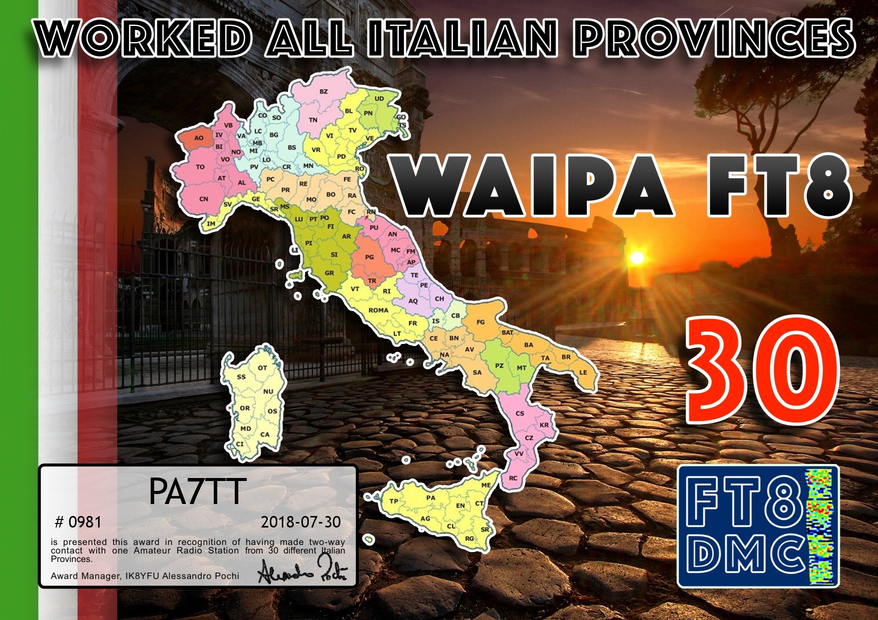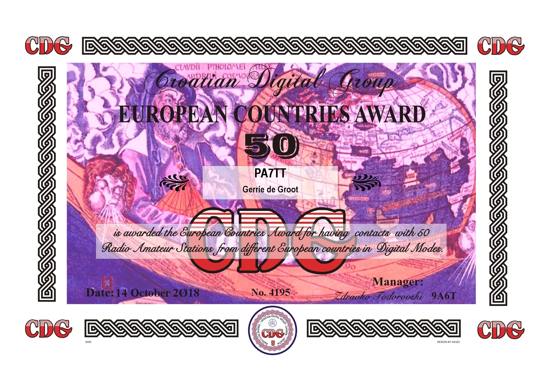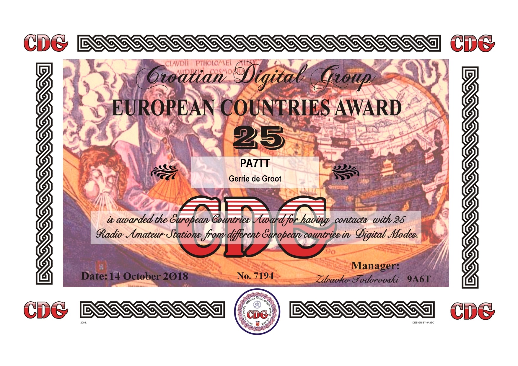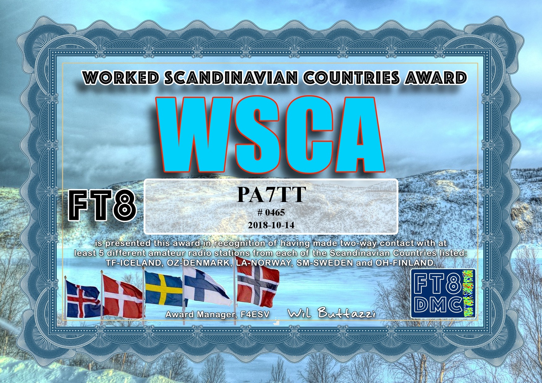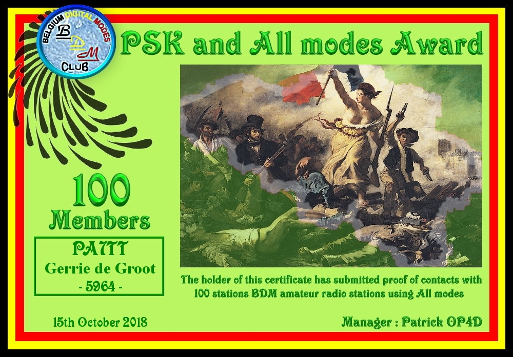 Een leuke uitdaging is het behalen van diploma’s (Awards) Dit is een bewijs dat een radioamateur aan een aantal verplichtingen heeft voldaan, Bijvoorbeeld een een verbinding maken (en bevestigd krijgen) van 100 verschillende landen. Ook kan men proberen omdit op één band te bereiken, bijvoorbeeld de 20 meterband. Deze band (14 mhz) is uitermate geschikt om verre verbindingen te maken (DX) Via het programma JTDX (FT8) worden digitale verbindingen tot stand gebracht. Hier onder zijn enige leuke awards verzameld. deze zijn gratis aan te vragen na het inzenden van het log (overzicht van gemaakte verbindingen) als er aan de voorwaarden is voldaan is het award gratis te downloaden